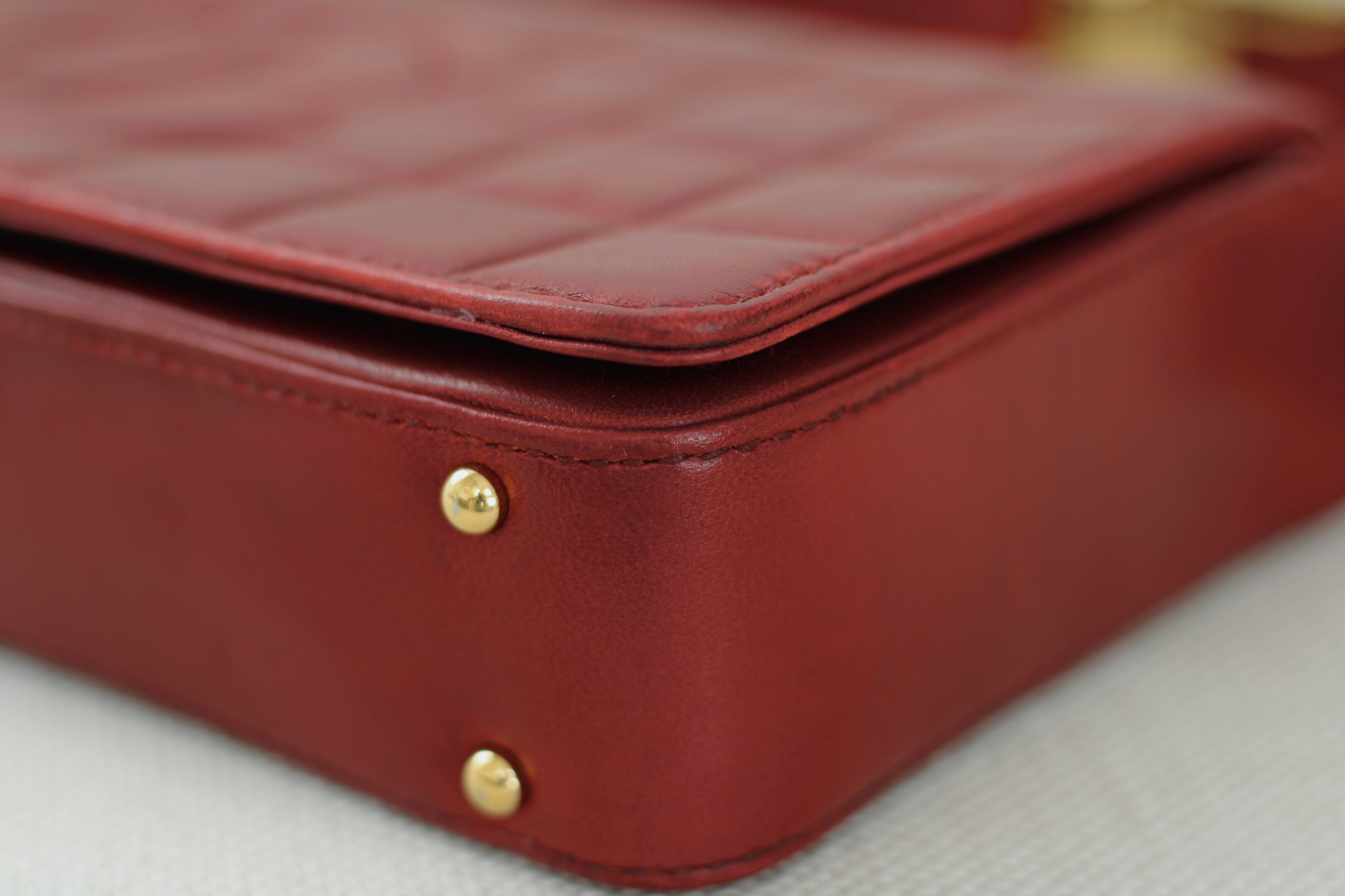 Vintage Chanel Burgundy Lambskin Chocolate Bar with Gold Hardware