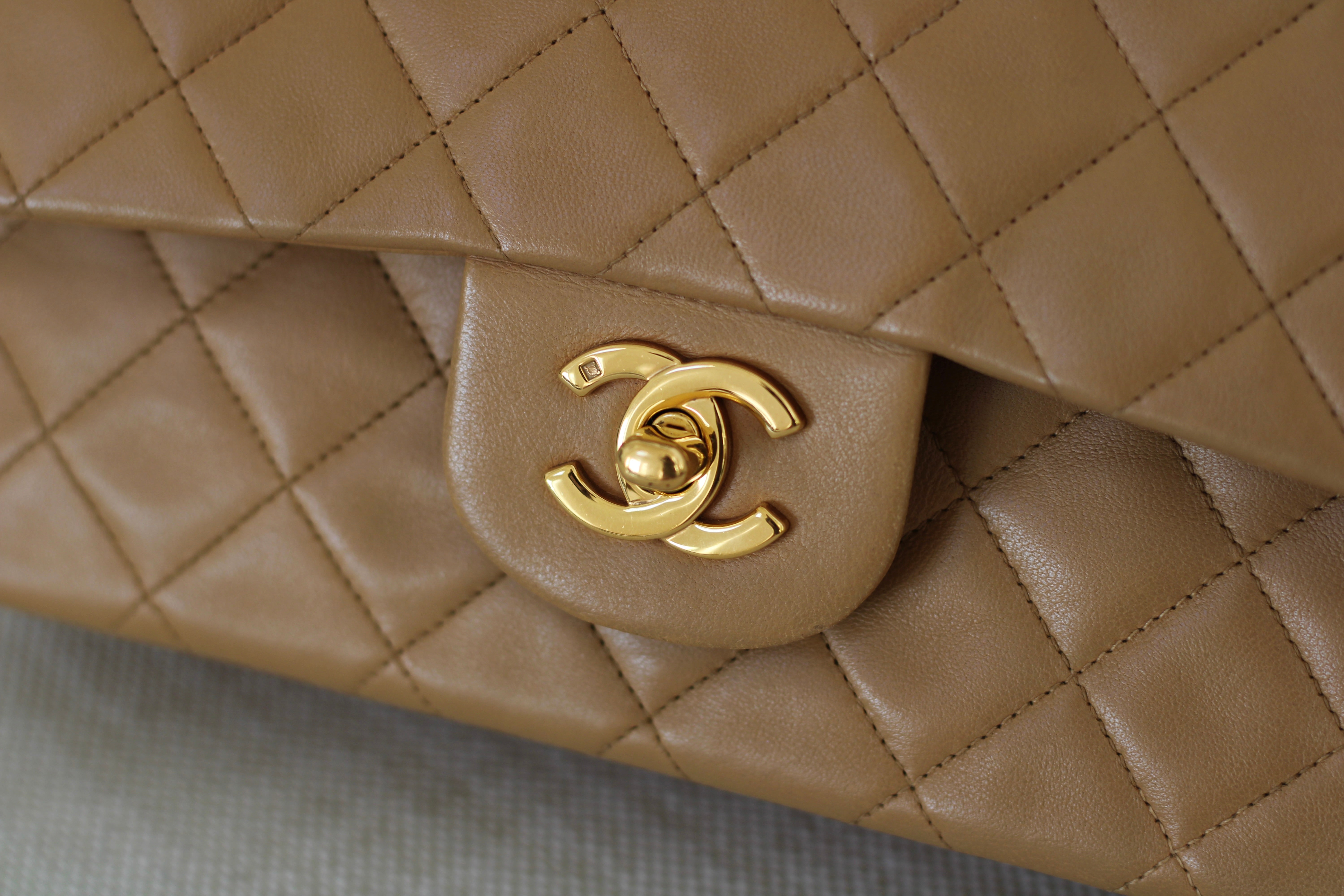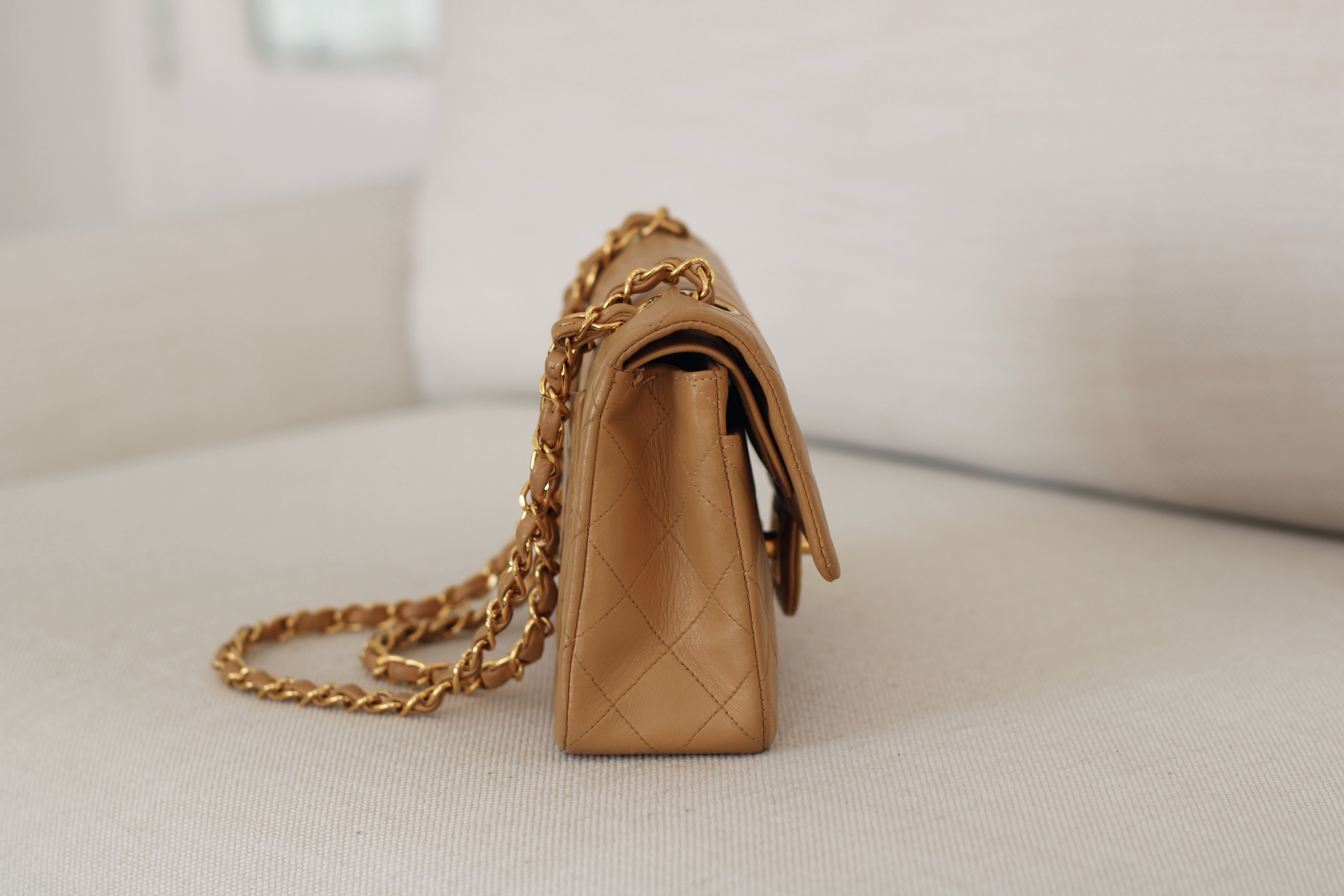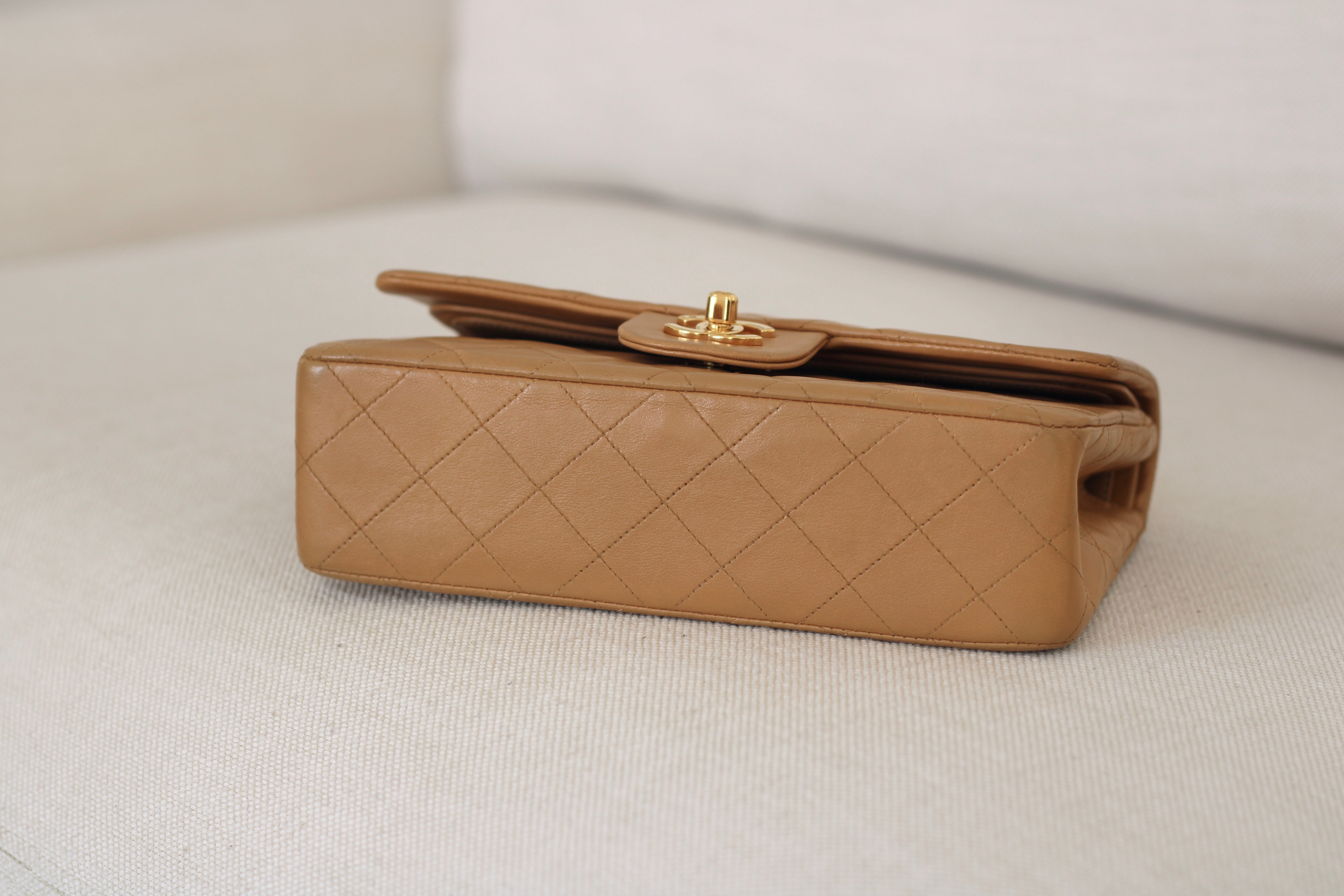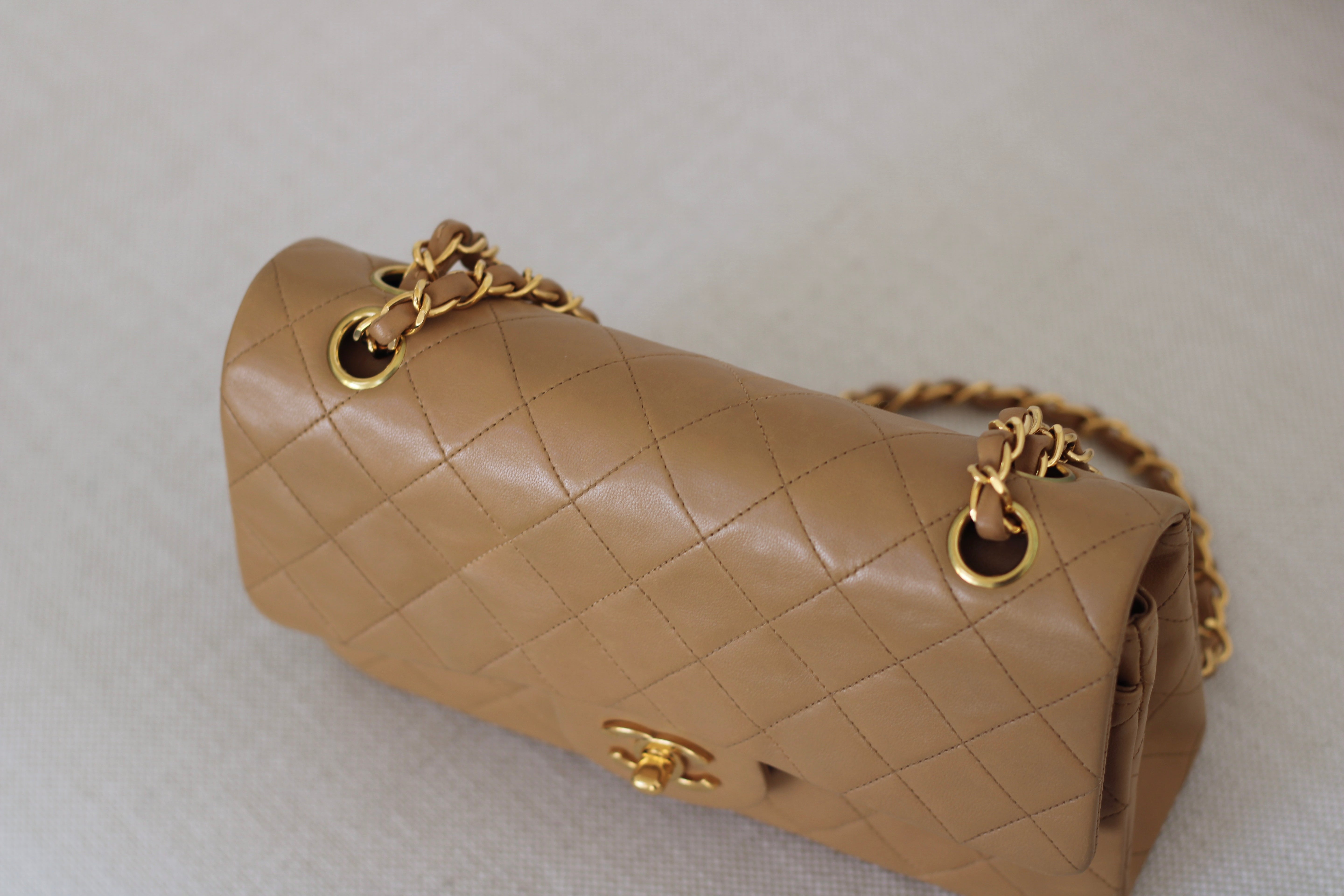Vintage Chanel Dark Beige Lambskin Small Classic Flap with 24k Gold Hardware
