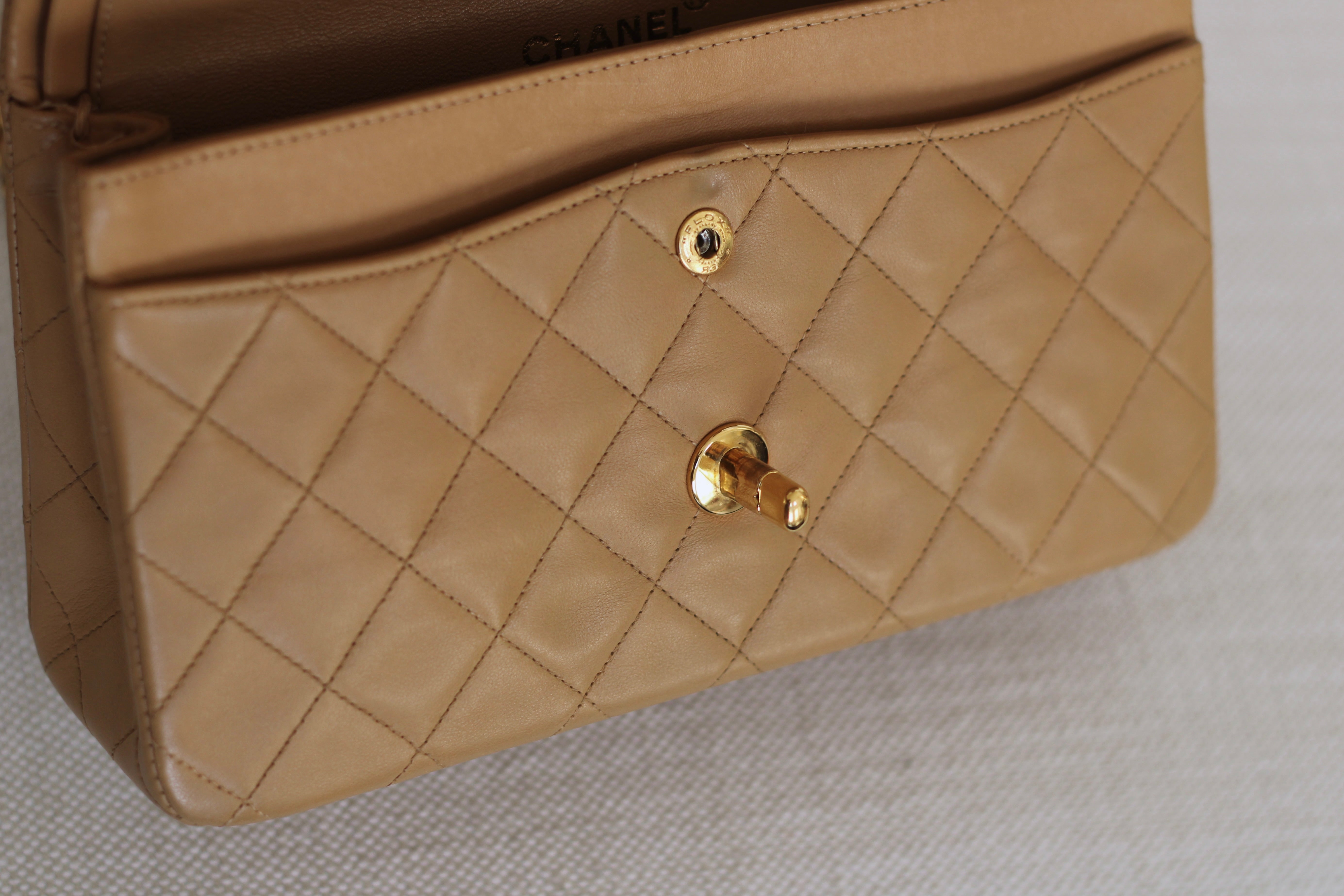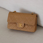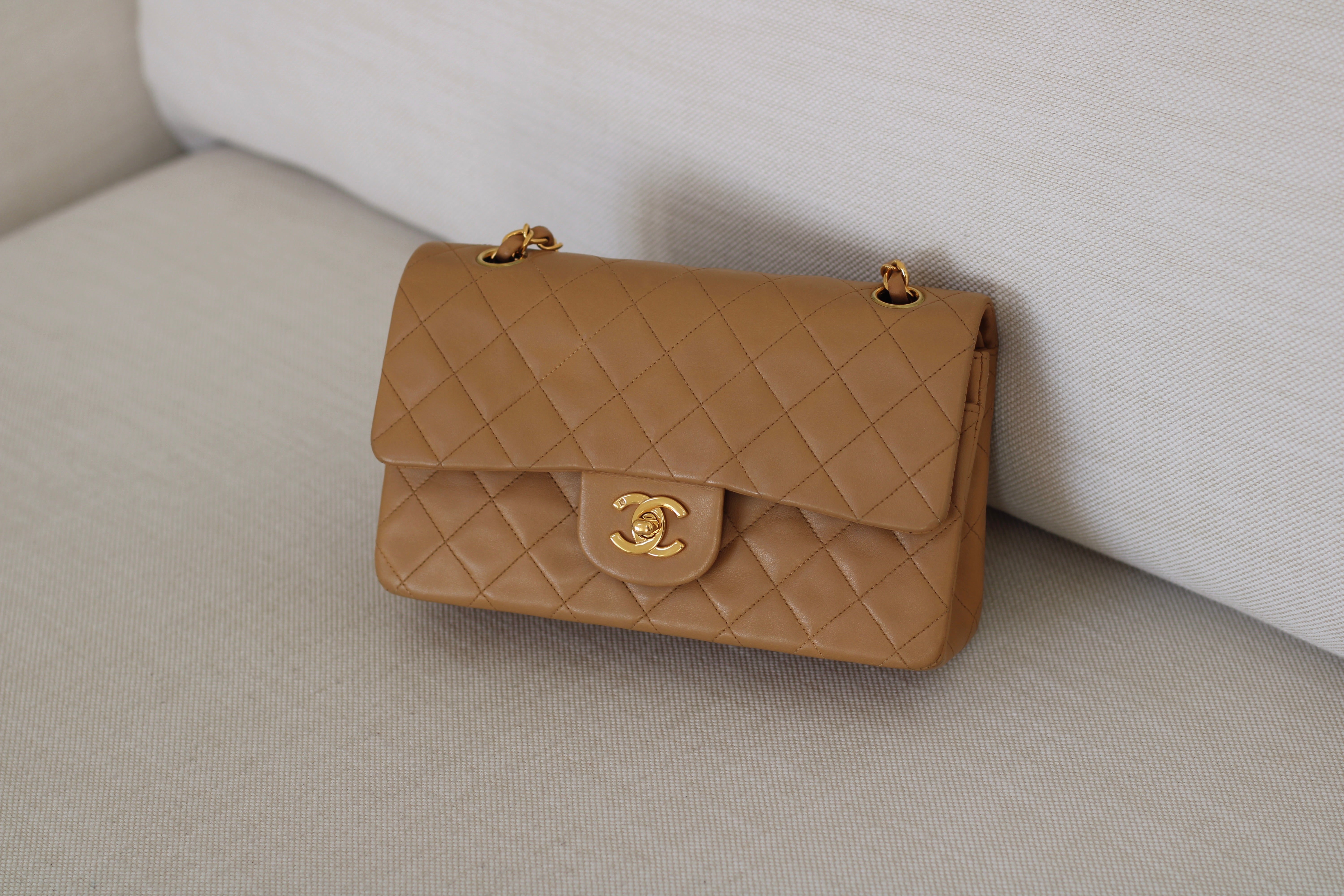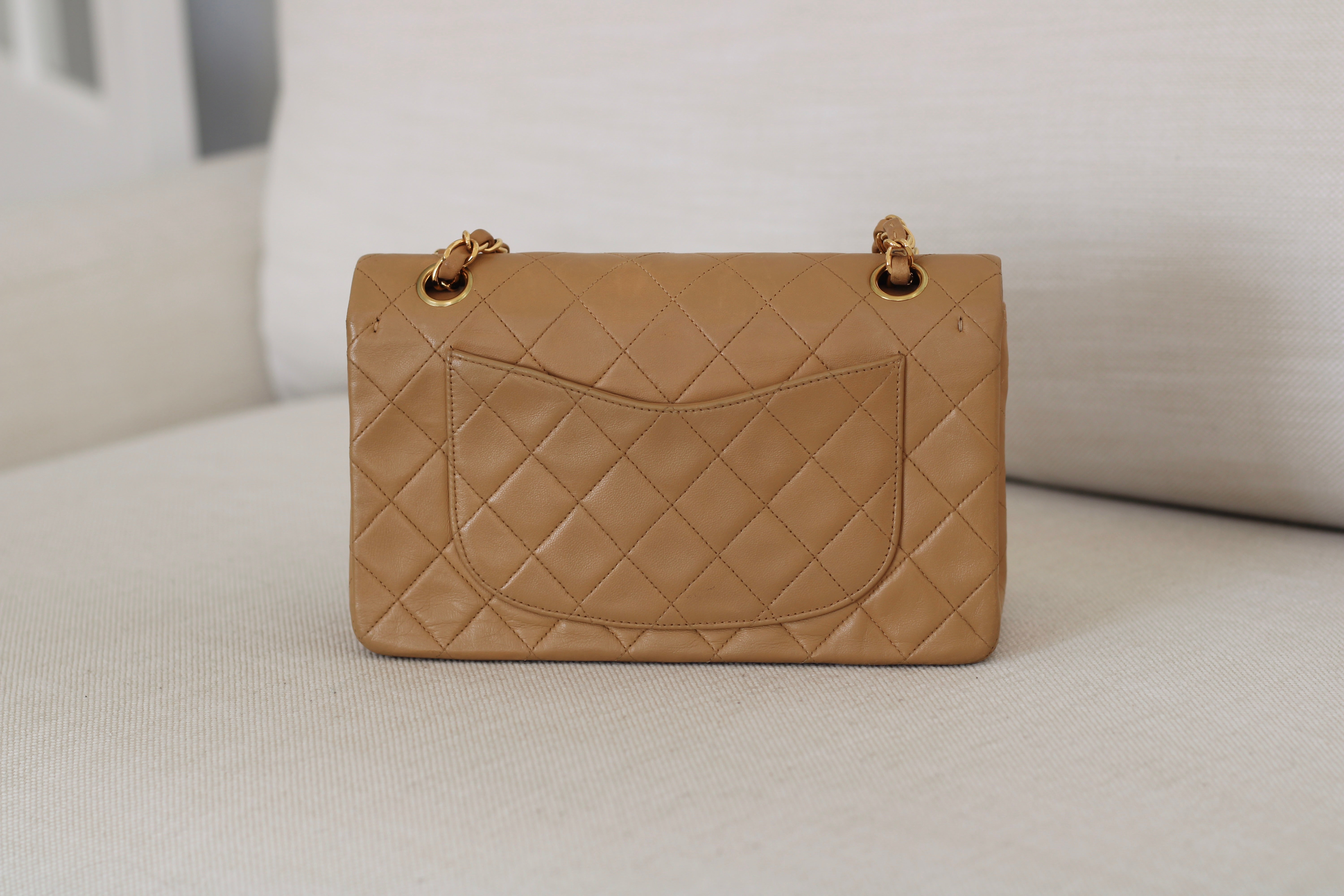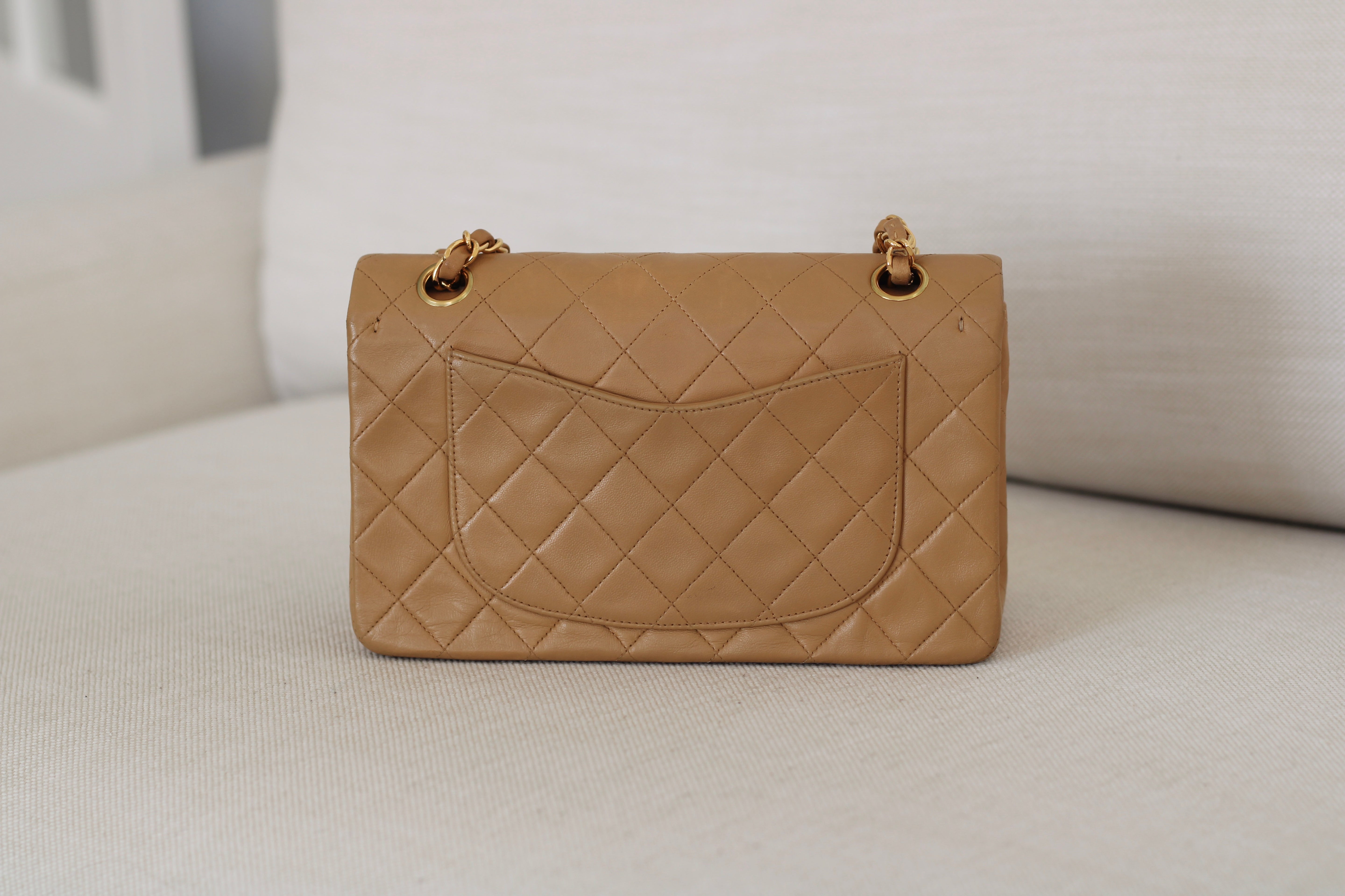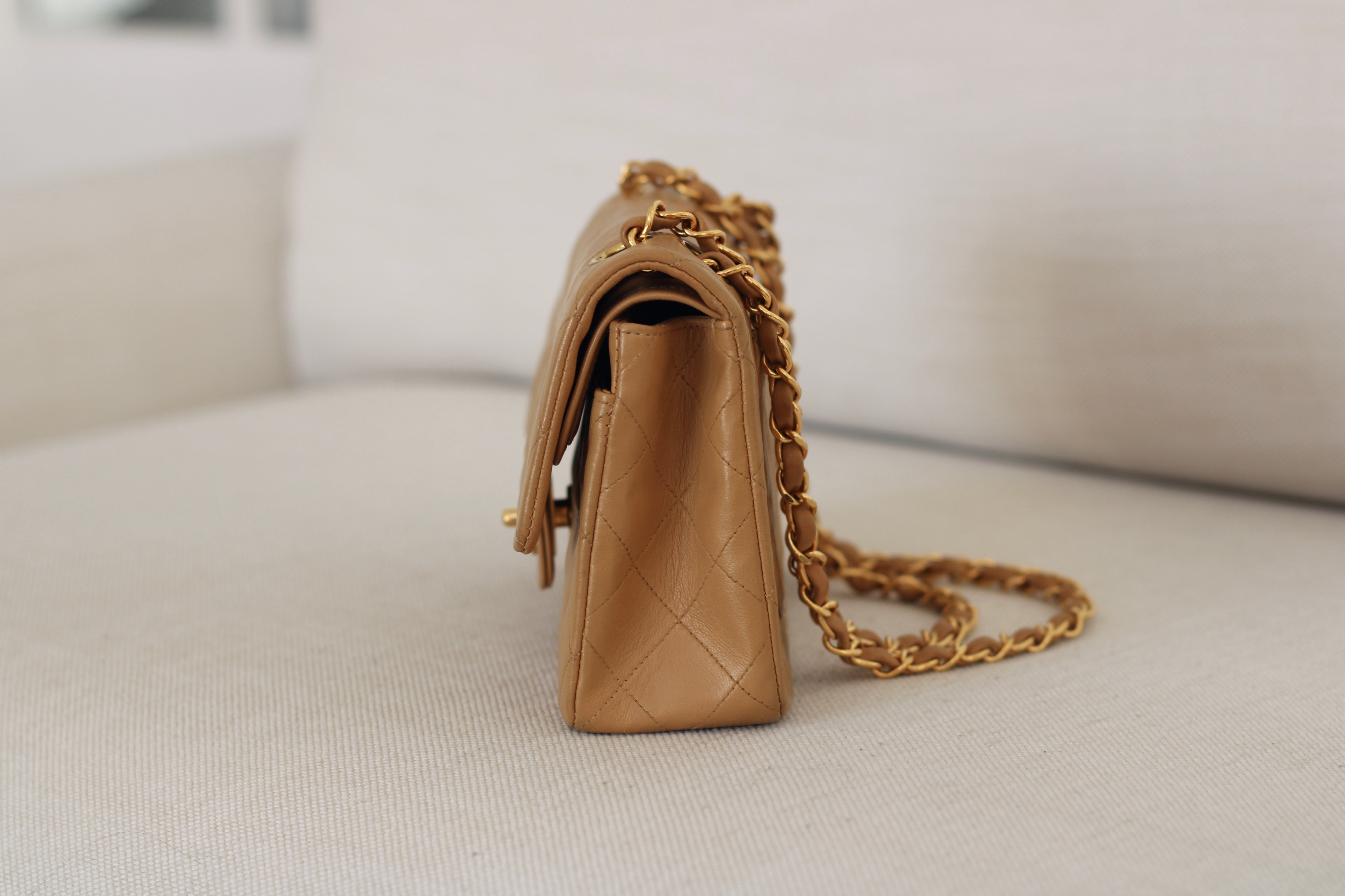 Vintage Chanel Dark Beige Lambskin Small Classic Flap with 24k Gold Hardware