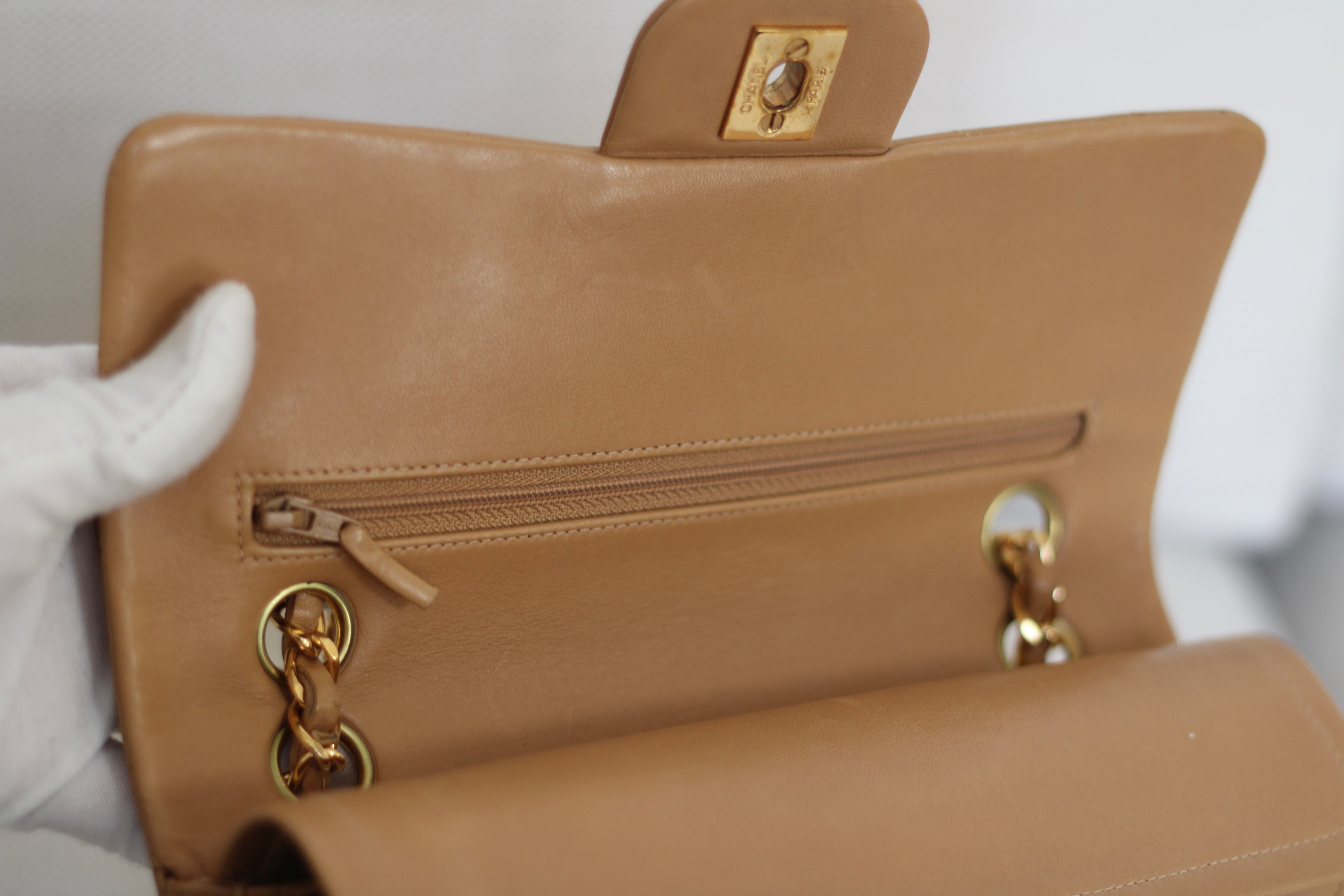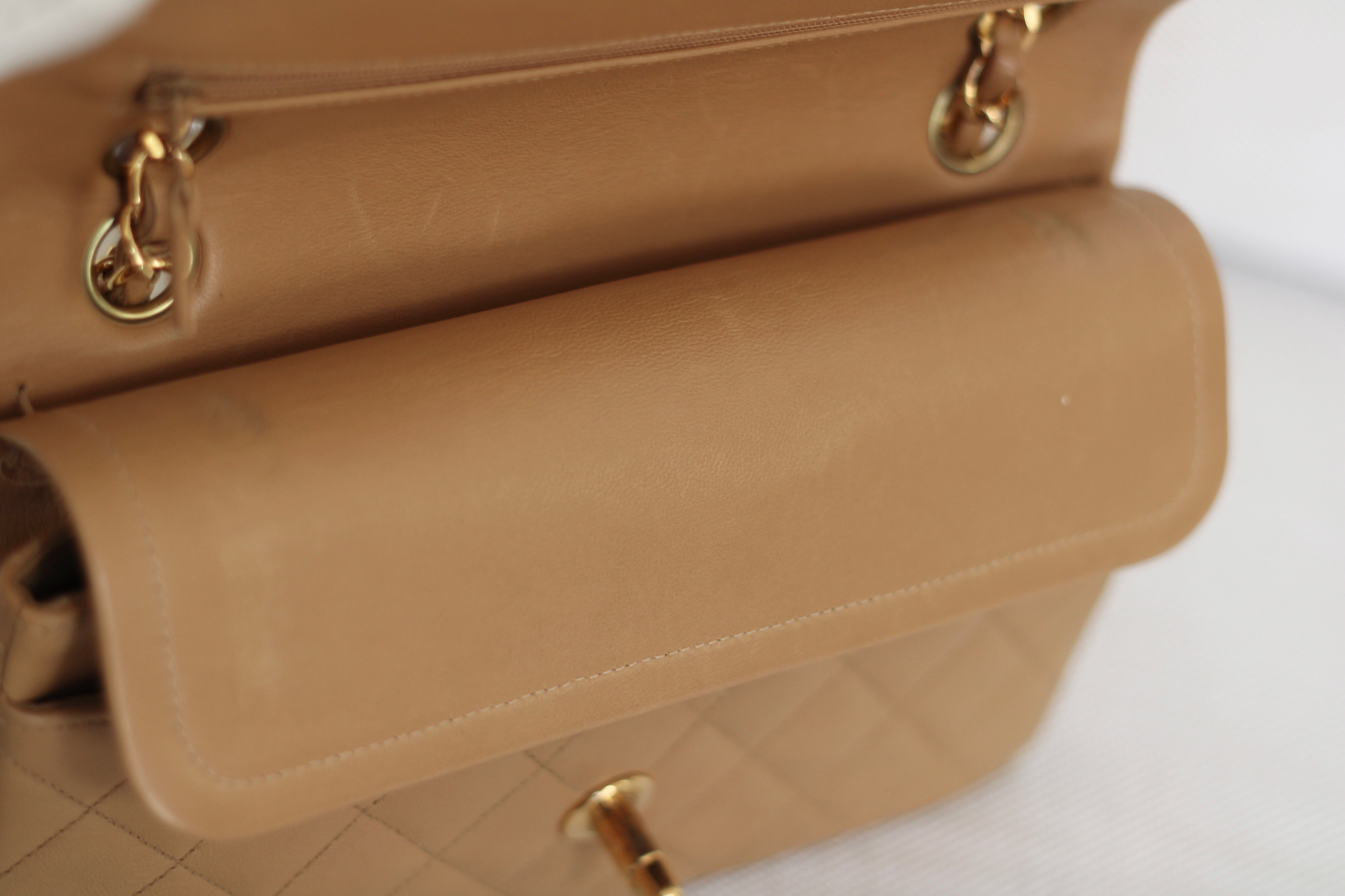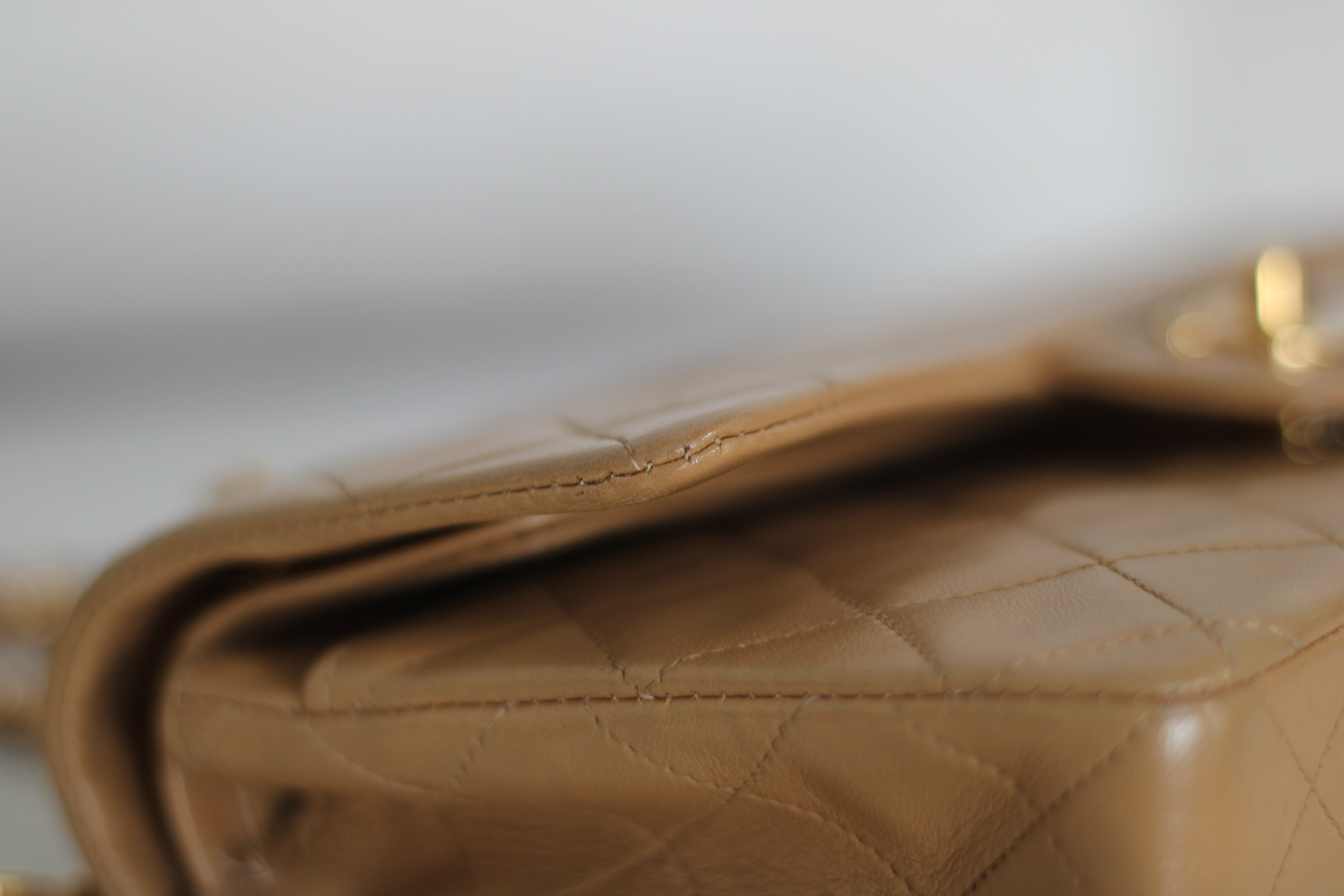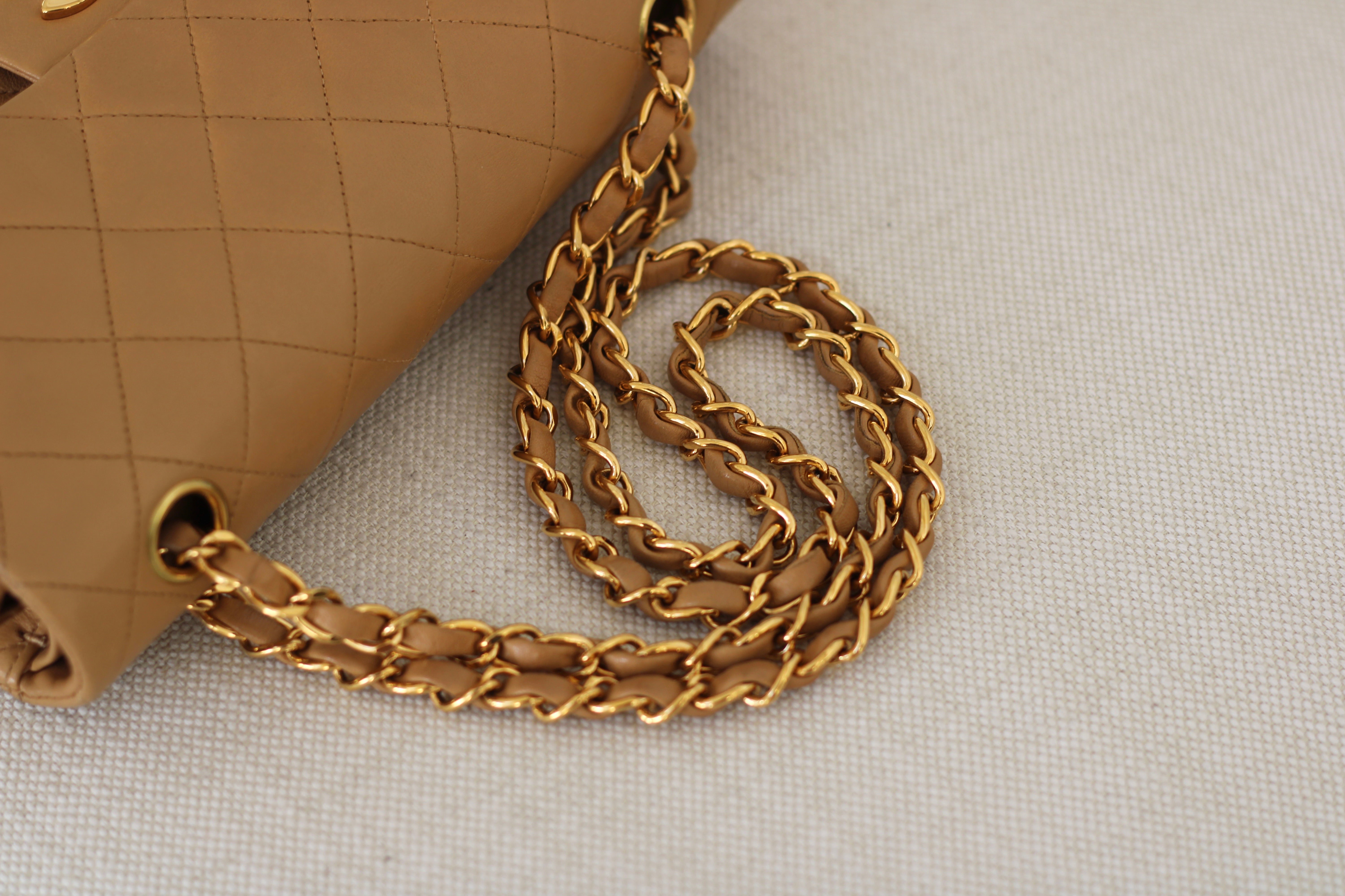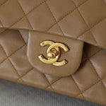 Vintage Chanel Dark Beige Lambskin Small Classic Flap with 24k Gold Hardware