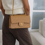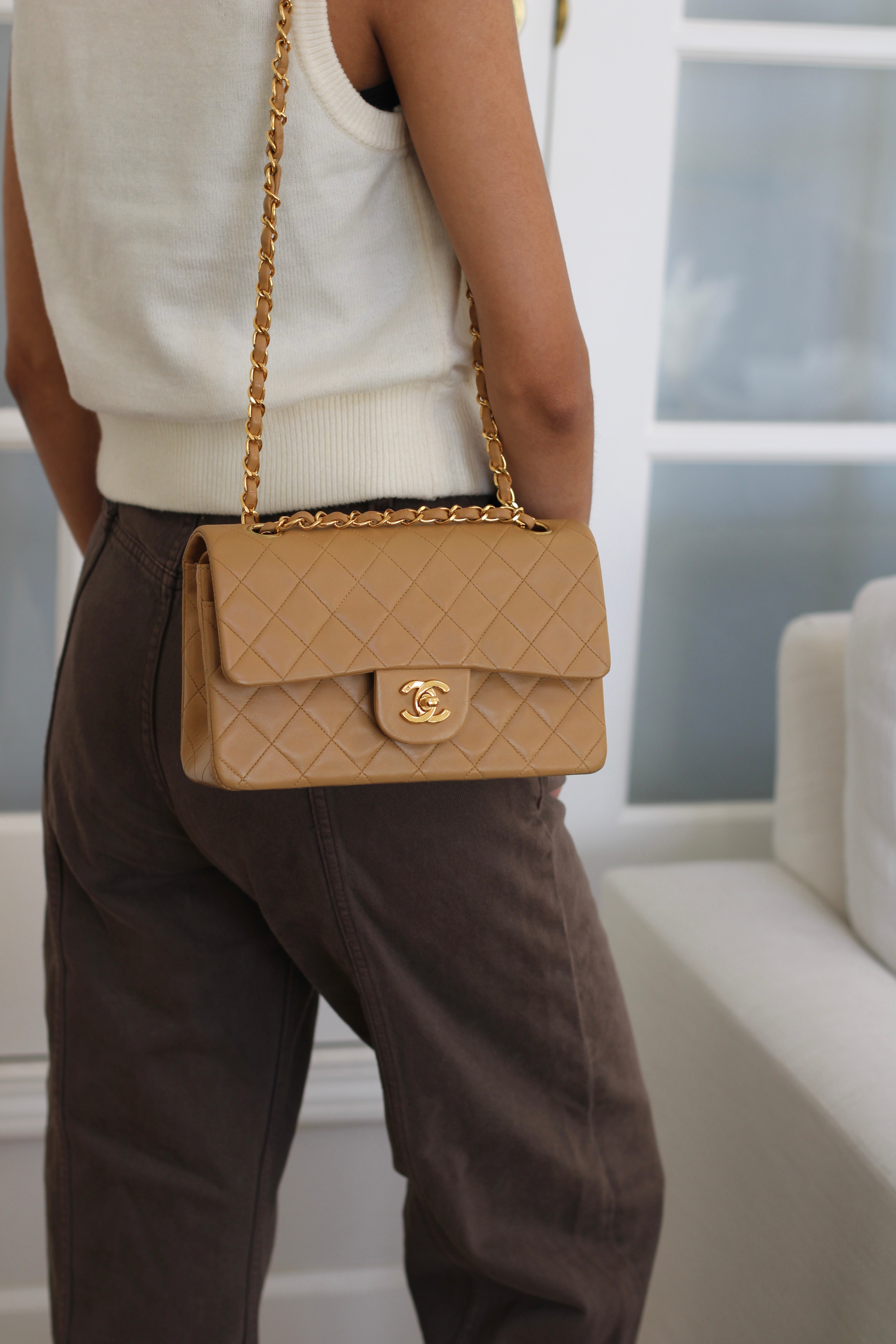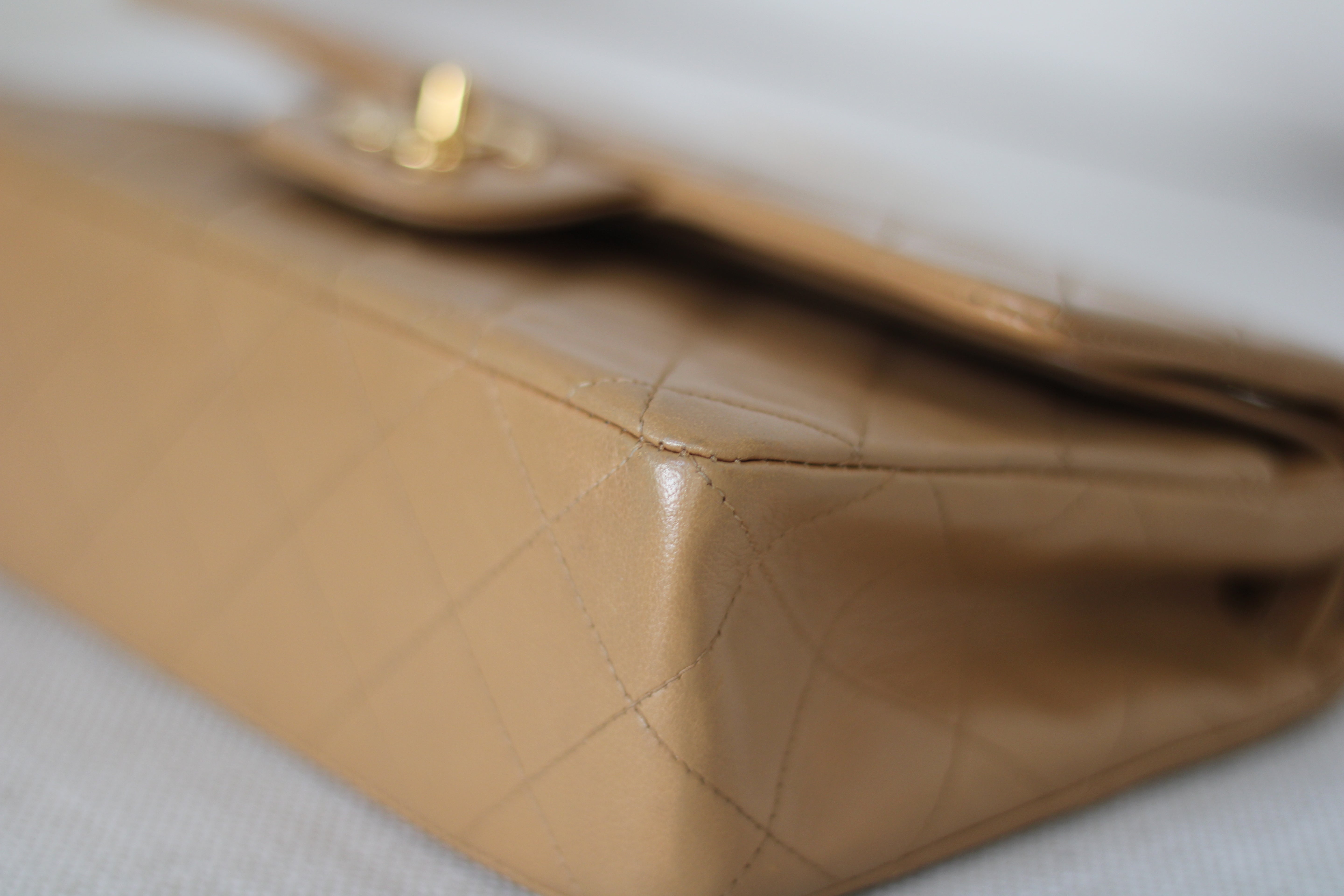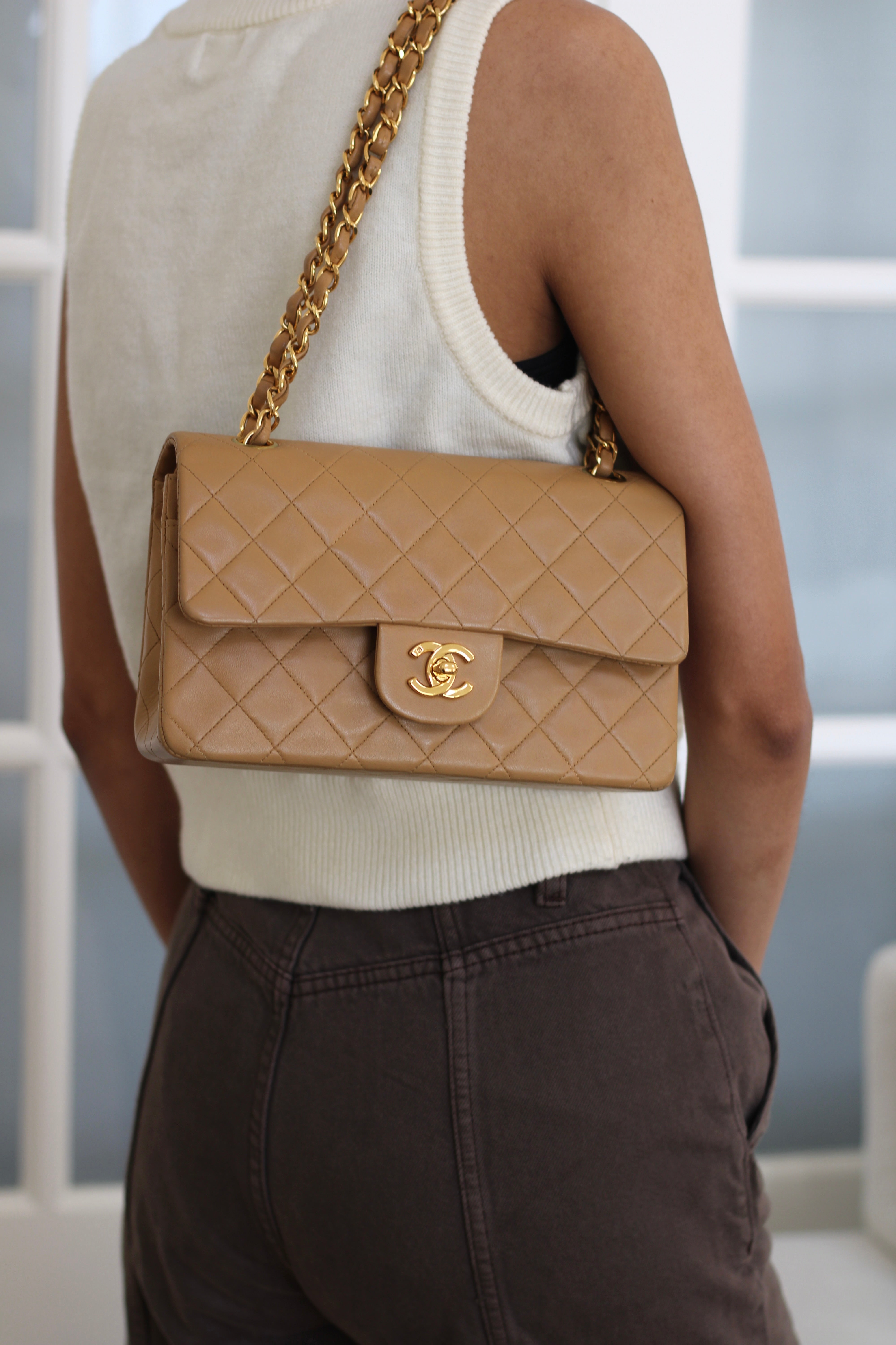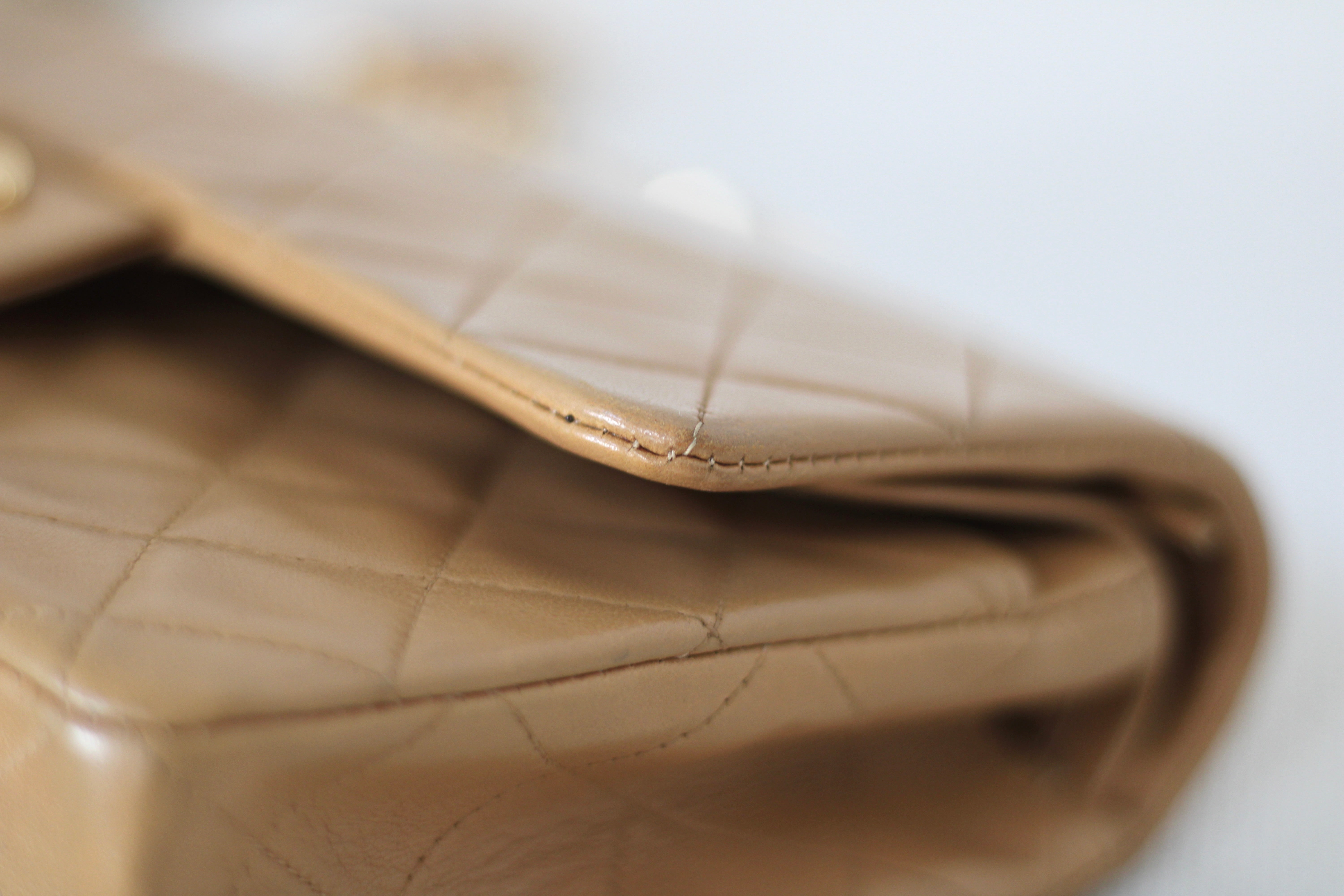 Vintage Chanel Dark Beige Lambskin Small Classic Flap with 24k Gold Hardware