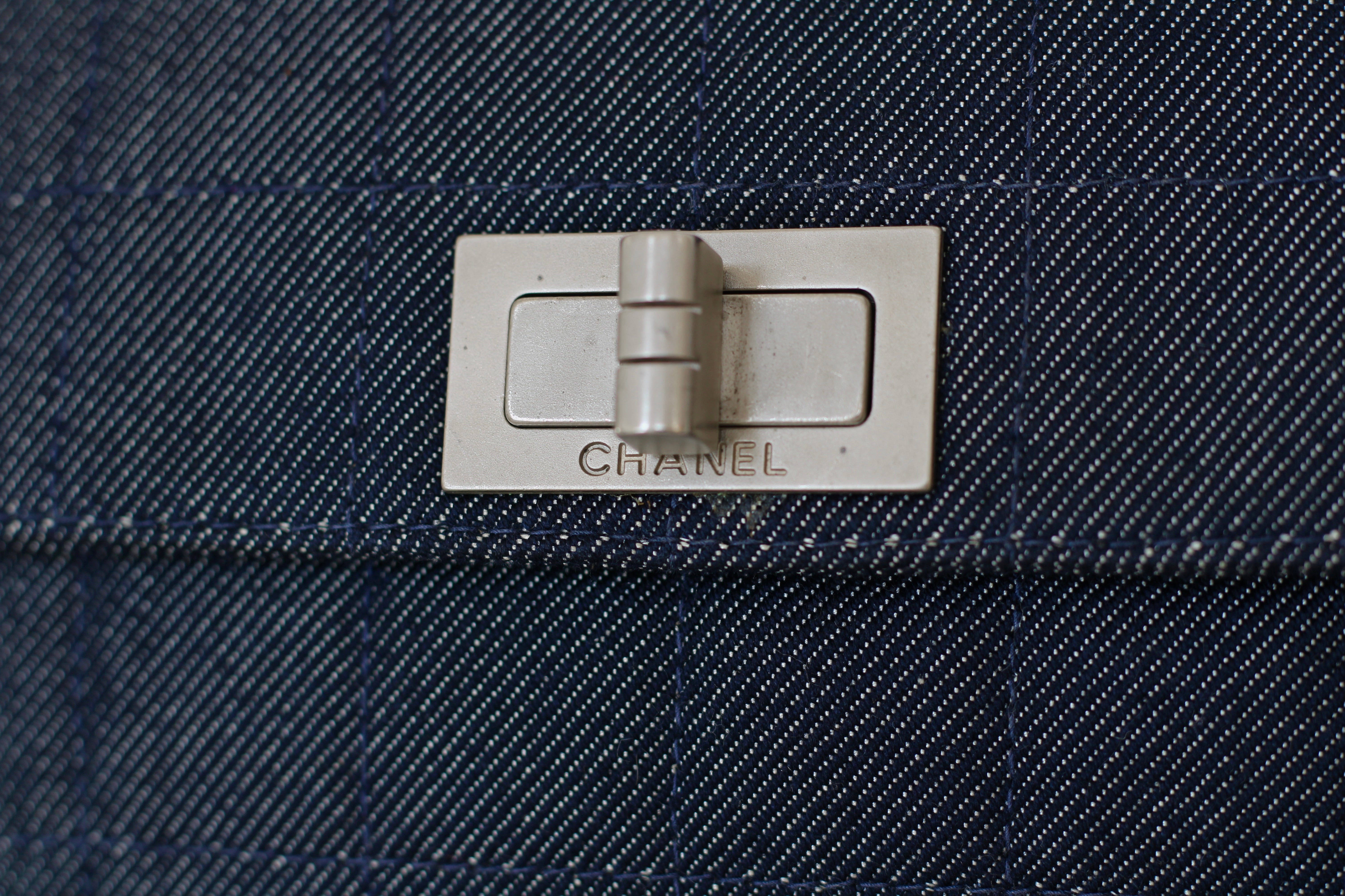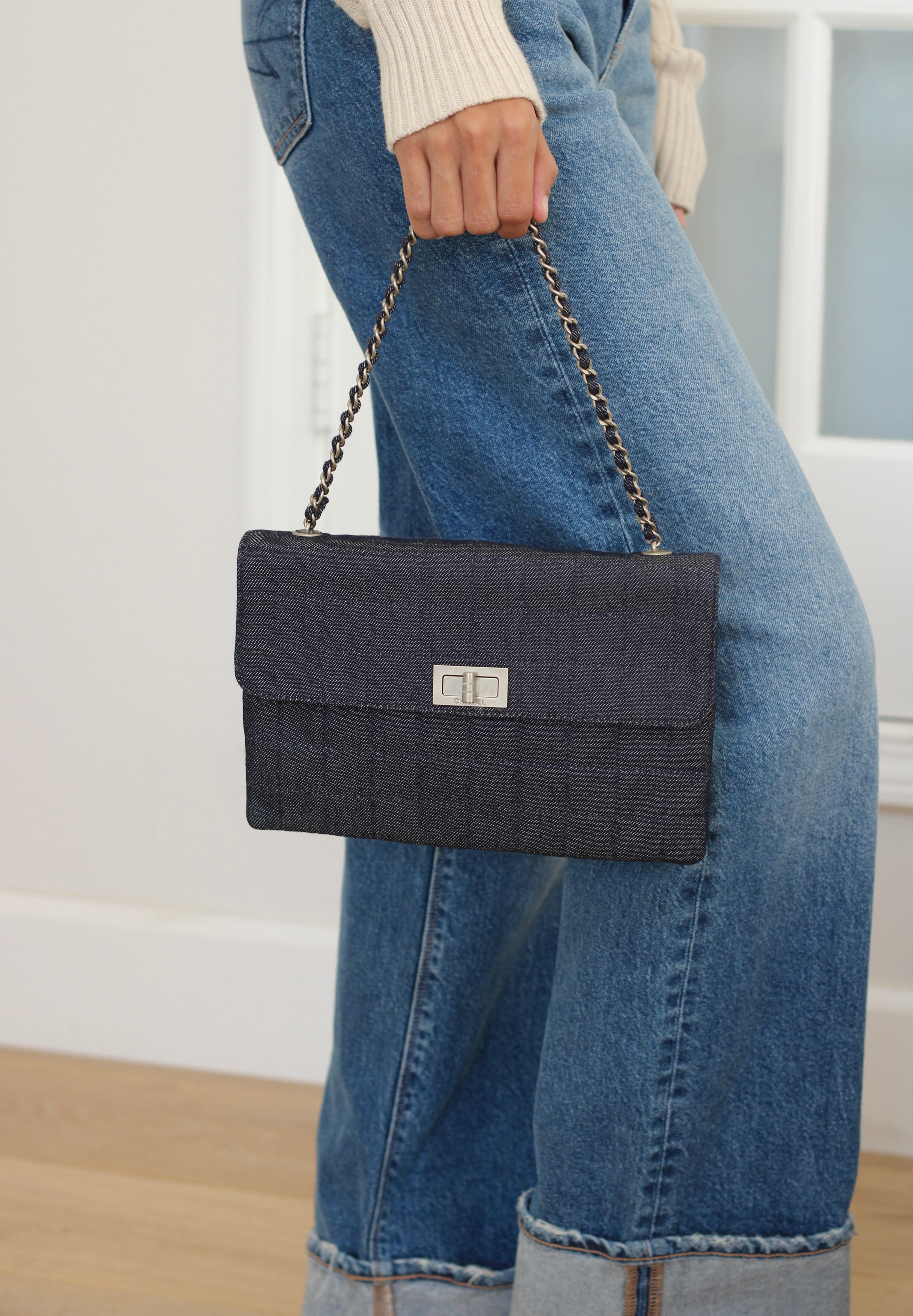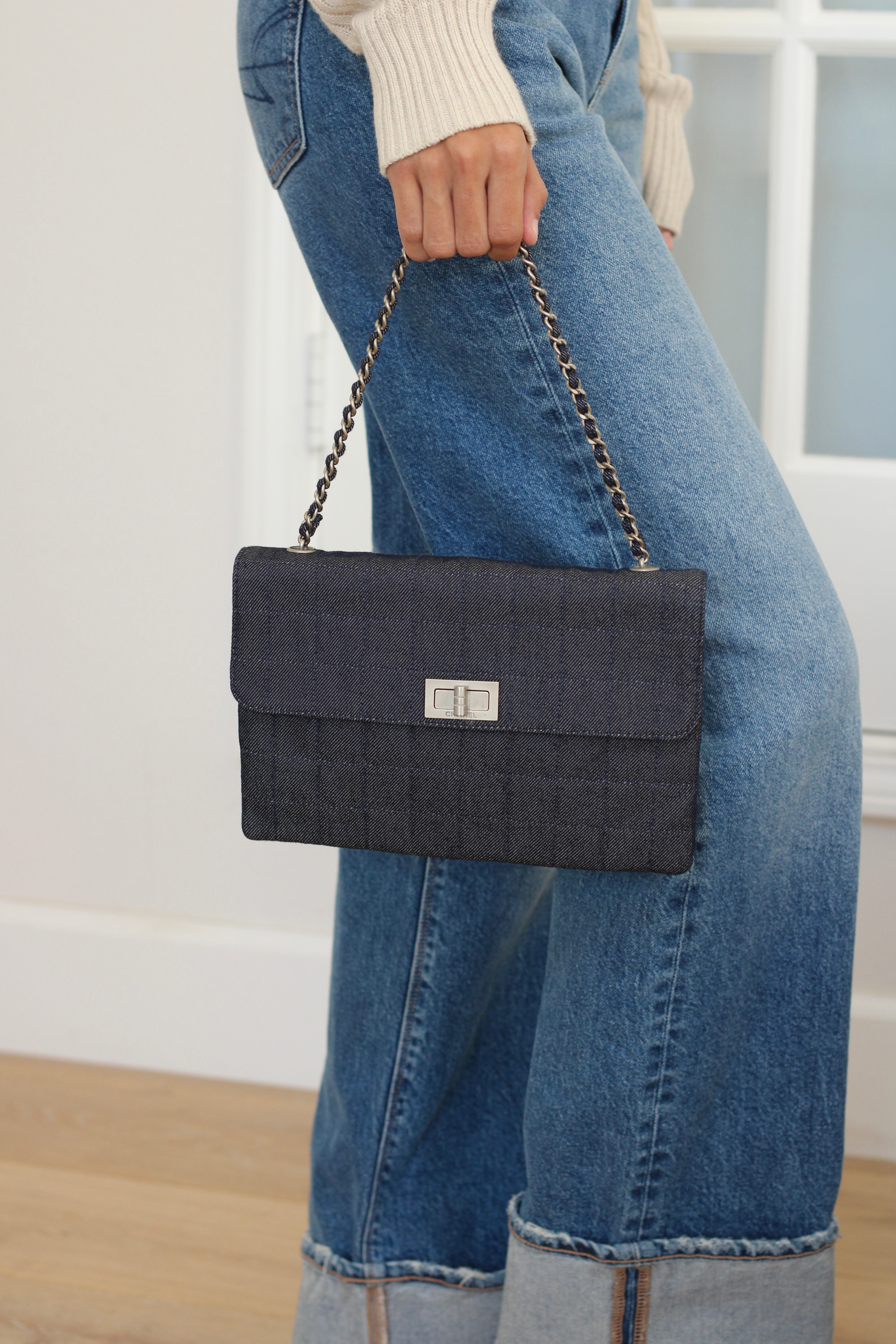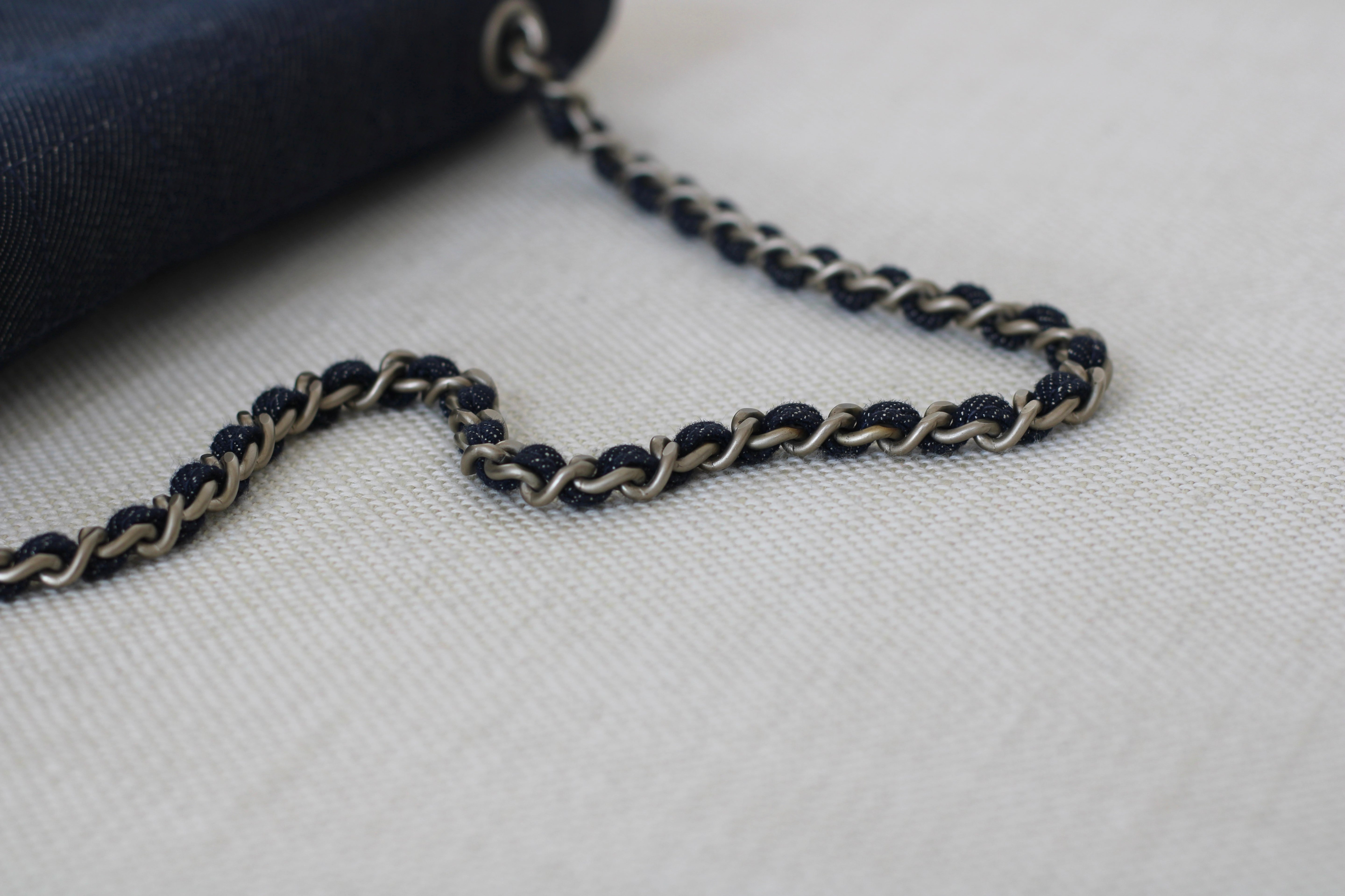 Vintage Chanel Denim Chocolate Bar with Aged Silver Hardware