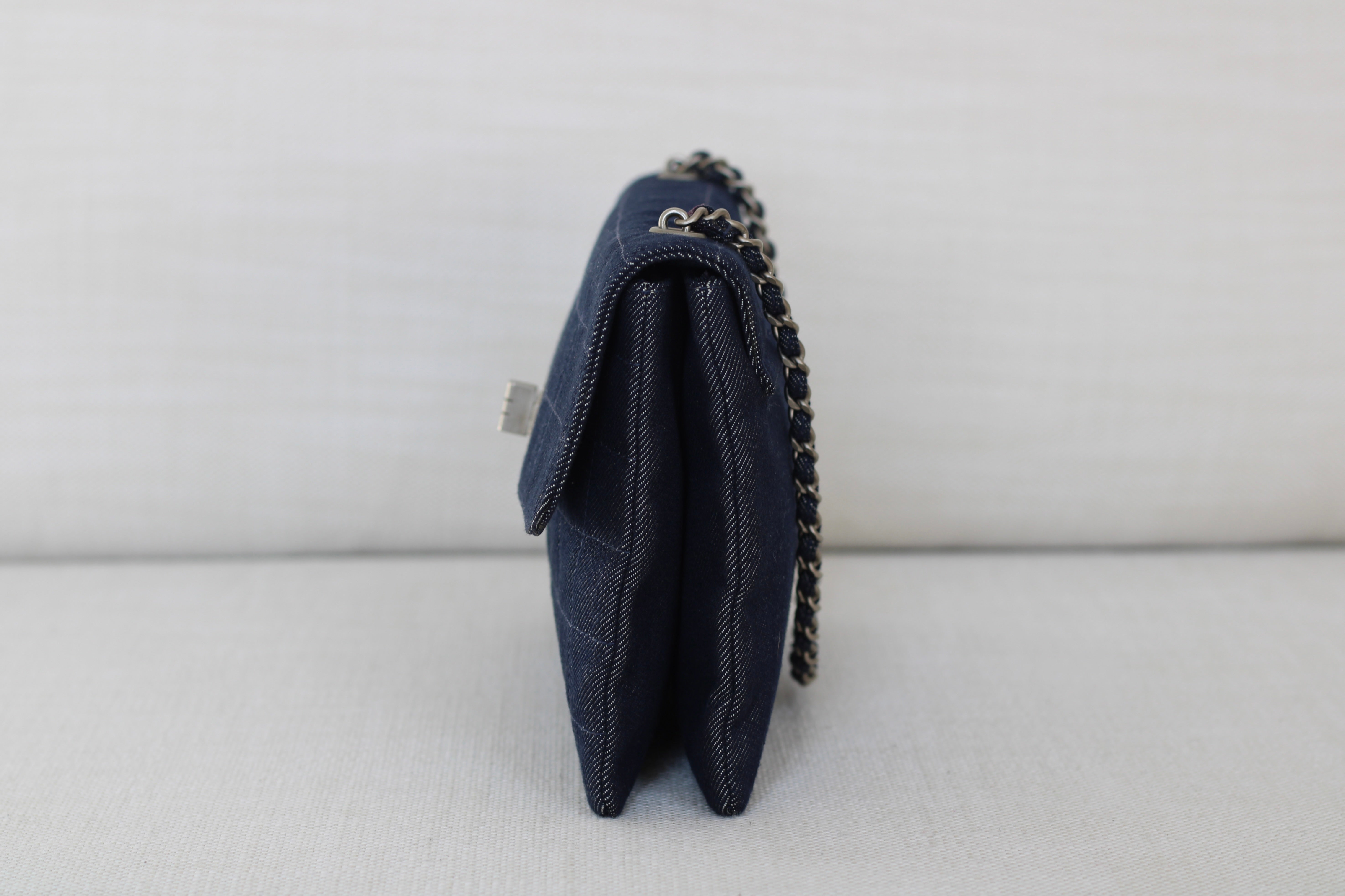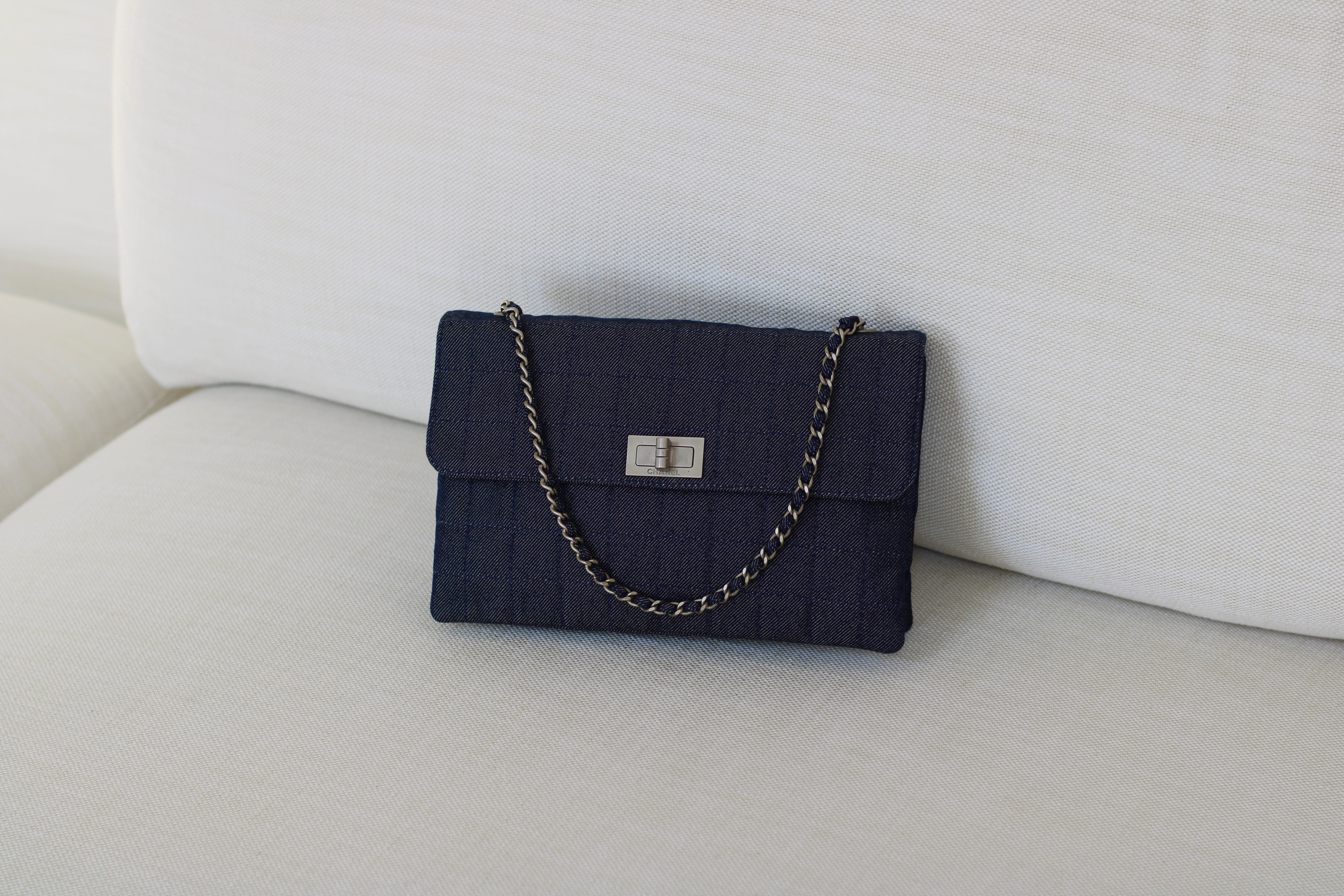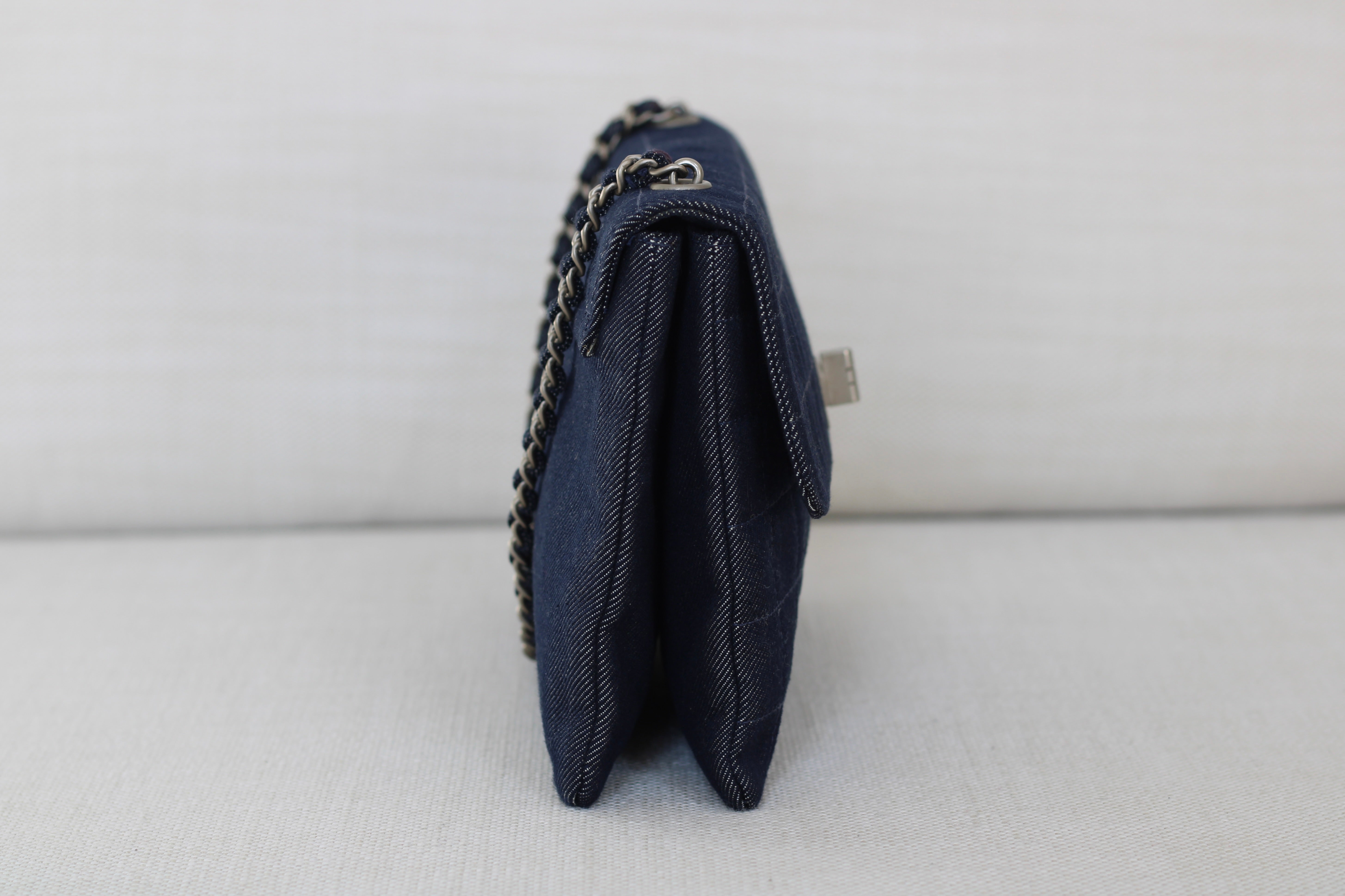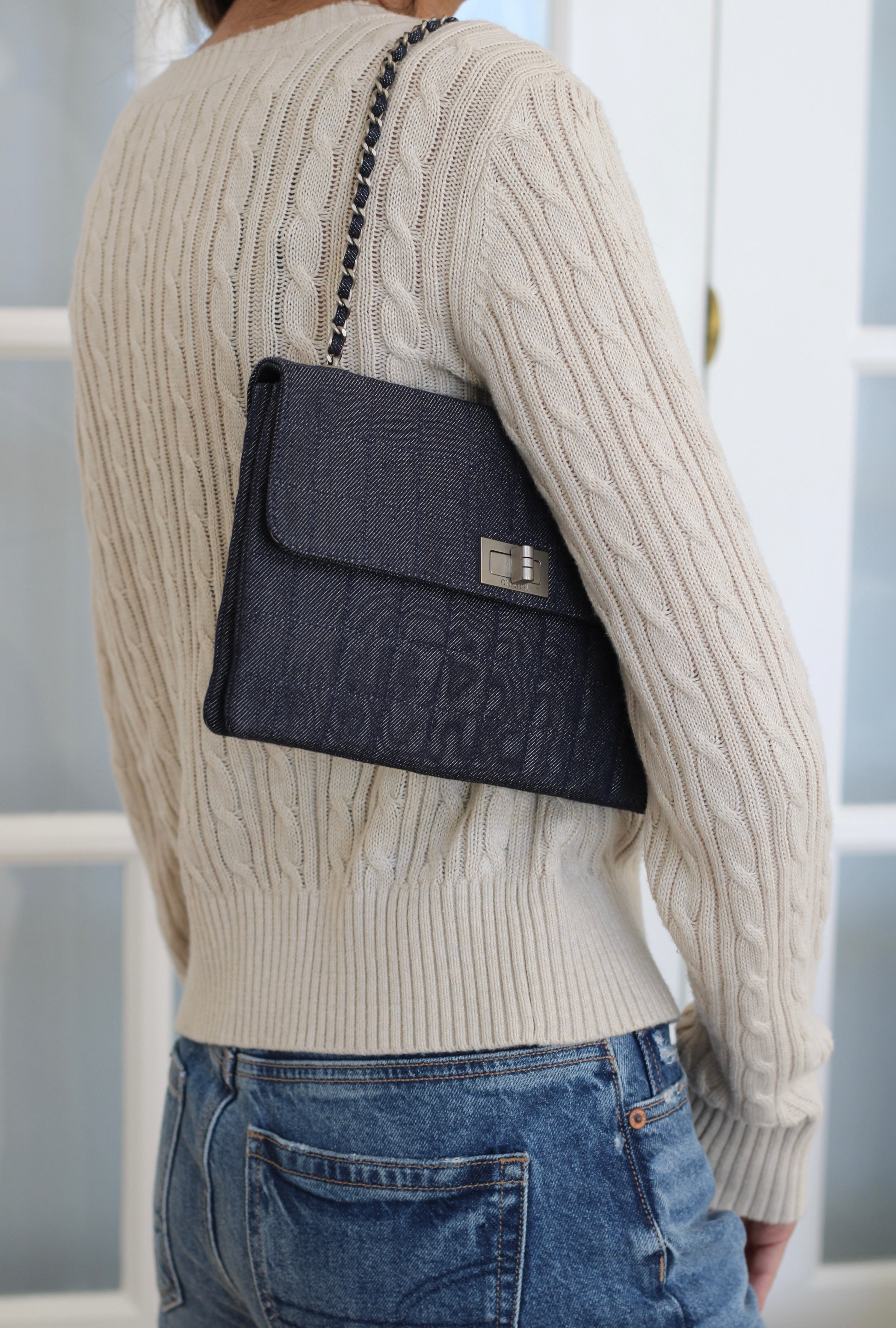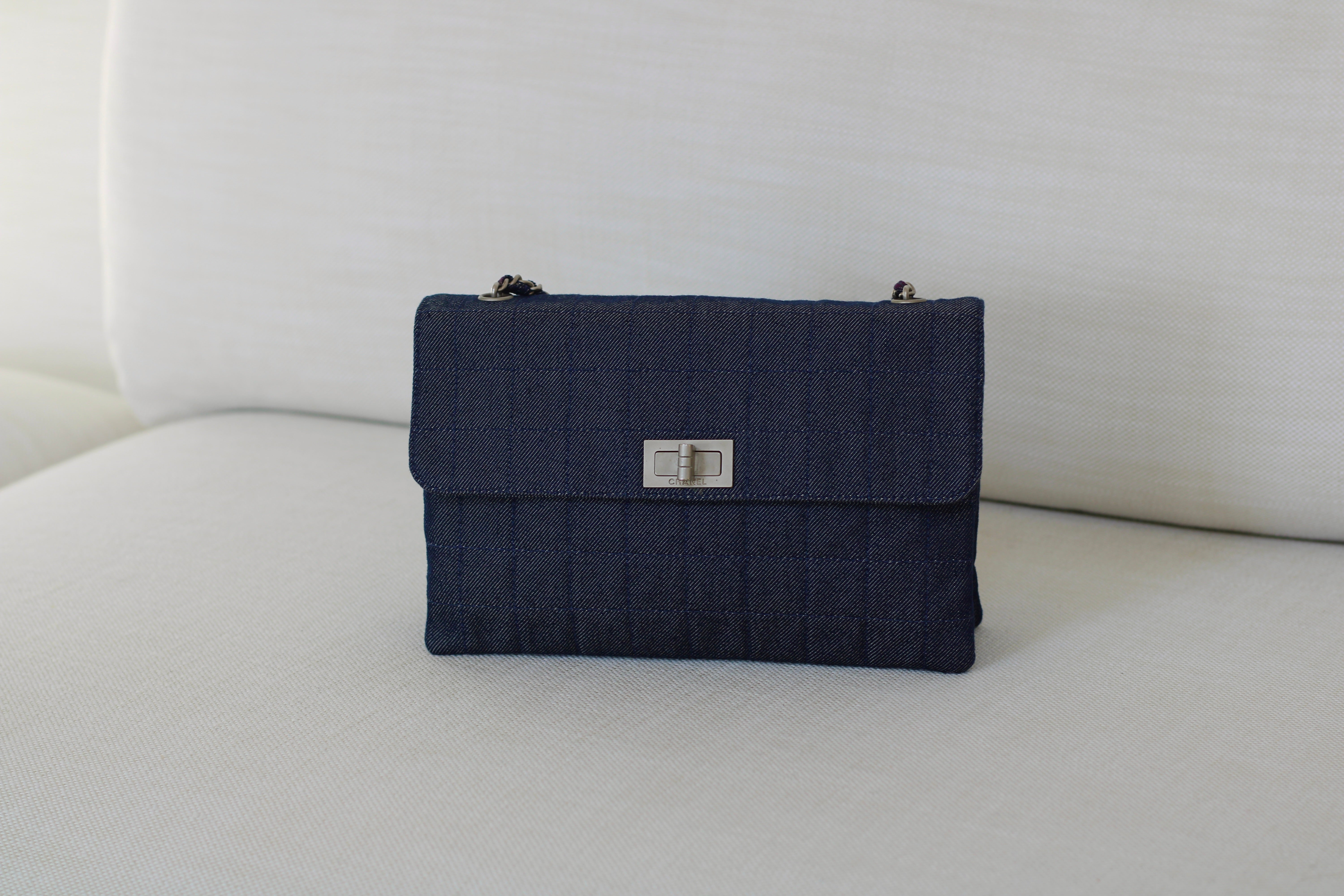 Vintage Chanel Denim Chocolate Bar with Aged Silver Hardware